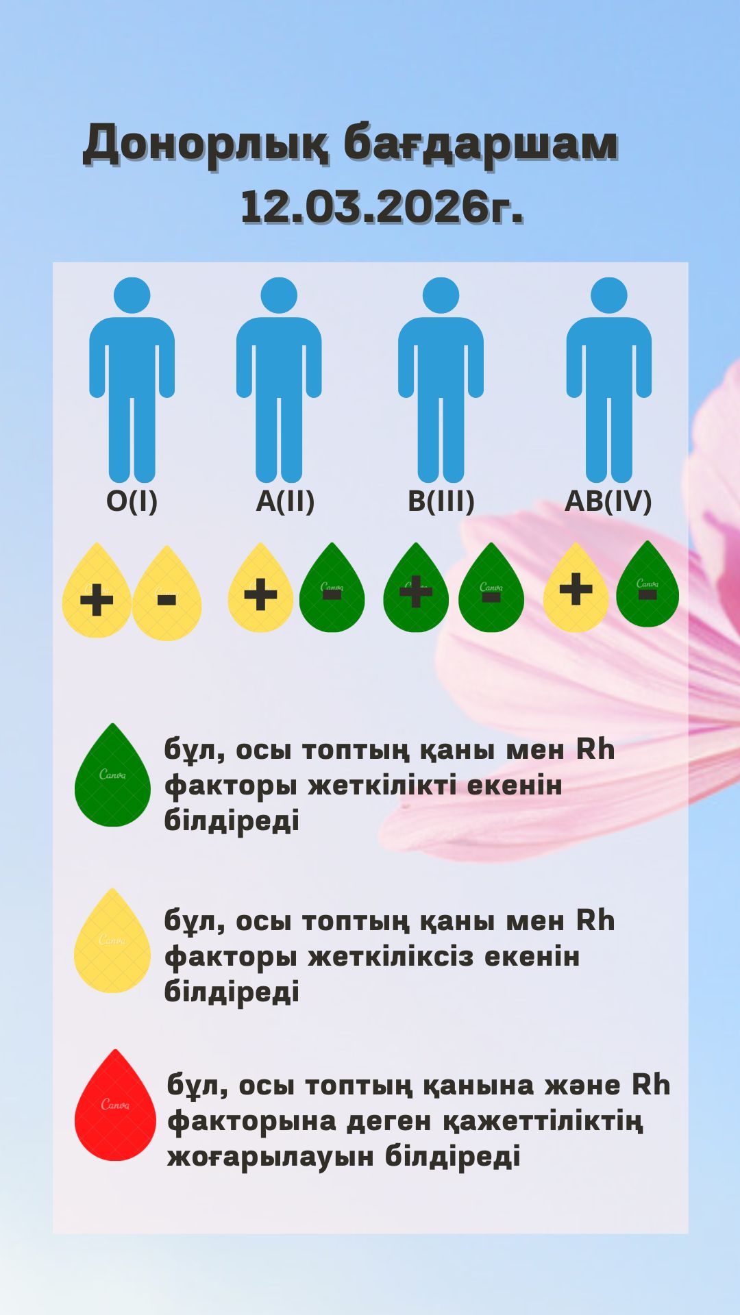 2026 жылғы 06 наурыз күні Халықаралық әйелдер мерекесі қарсаңында сіздерді серіктестеріміз гүл салоны «ROMANTIC» @romantic.uka, «Terra Coffee» кафетерийлері және «Шаурма Кавказа» компаниясы @waurma kavkaza қолдауымен ұйымдастырылатын дәстүрлі донорлық акцияға қатысуға шақырамыз. Аяулы ханымдар, міндетті түрде келіңіздер, бұл донорлық акция нәзіктікке, мейірімге және әйел жанының қуатына арналады. Жылу мен қамқорлықты жүректен тарата білетін өздеріңізсіздер. Бүгін сіздер үшін ең асыл сыйды – адам өмірін сақтауға үлес қосу мүмкіндігі бар. Бұл күні қан орталы...