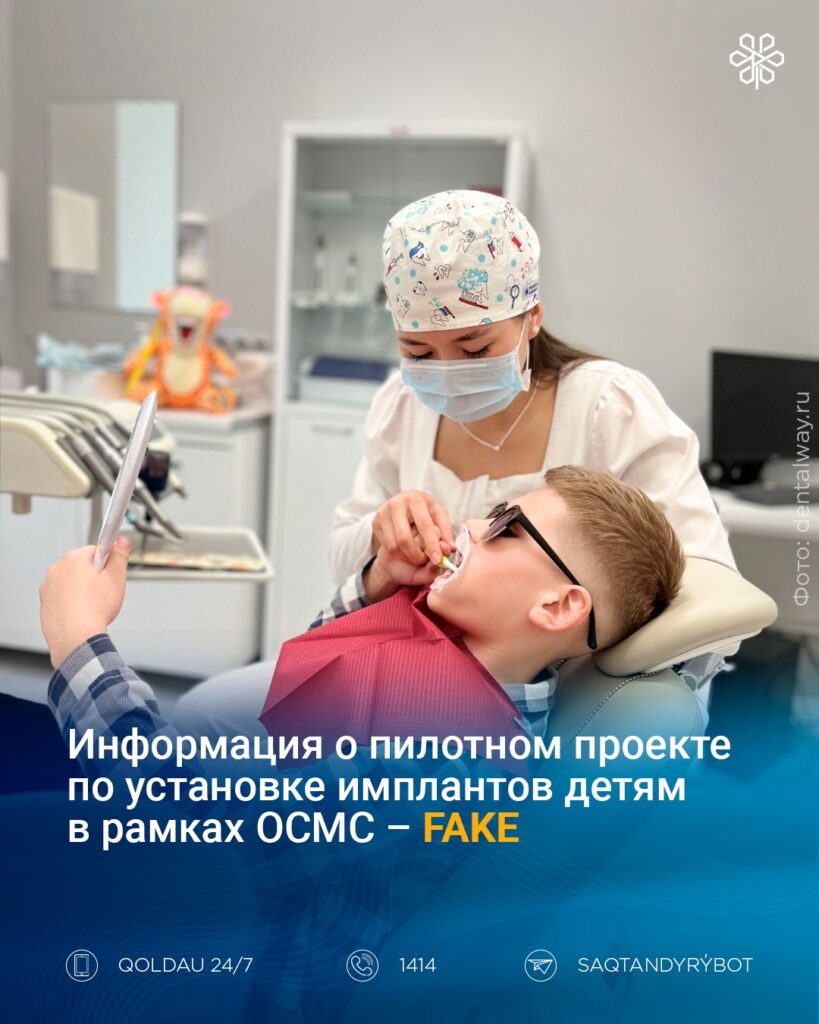В медиапространстве появилась информация о якобы запуске пилотного проекта в городах Алматы, Астана, Шымкент и некоторых областях по установке брекетов и имплантов для детей в возрасте до 18 лет по ОСМС