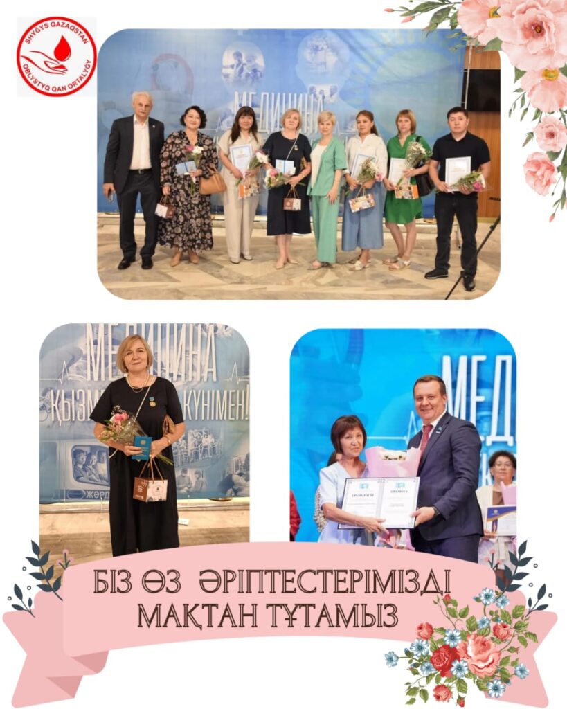 Қан орталығының директоры Светлана Александровна Шмурыгина Денсаулық сақтау жүйесін дамытуға, медицина қызметкерлерінің құқықтарын қорғау идеясын ілгерілетуге қосқан елеулі үлесі үшін «AQNIET» бастауыш кәсіподақ ұйымының төрайымы Динара Рашидовна Салимбаева Денсаулық сақтау қызметкерлерінің Қазақстандық салалық кәсіподағының «Кәсіподаққа сіңірген еңбегі үшін» төсбелгісін табыс етті.