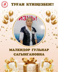 Бүгін біз өз ұжымымыздың маржаны – Малендор Гульнар Сағынғанқызын туған күнімен құттықтаймыз!