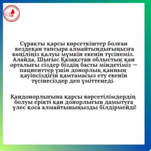 Қан тапсыруға қалай дайындалуға болады?Шын жүректен біздің тұрақты донорымыз Бейсенбина Зарина Нұрланқызын туған күнімен құттықтаймыз!