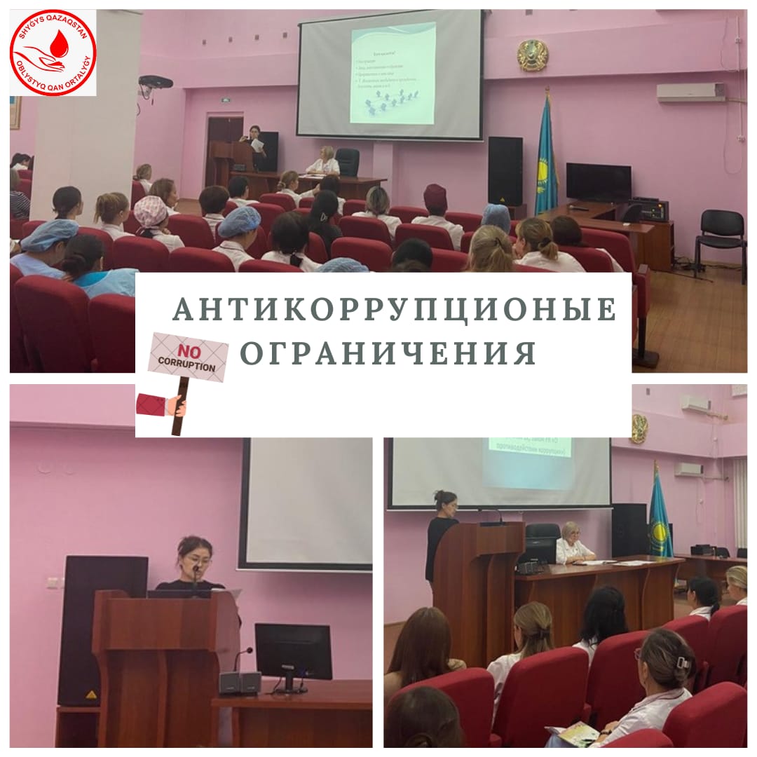 22 сентября 2025 года комплаенс-офицер КГП на ПХВ «Восточно-Казахстанский областной центр крови» (далее – ВК ОЦК) Жайсанбаева Динара в рамках ежеквартального обучения ознакомила сотрудников ВК ОЦК со статьей 12 Закона РК «О противодействии коррупции» от 18 ноября 2015 года №410-V ЗРК.