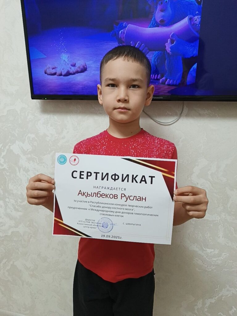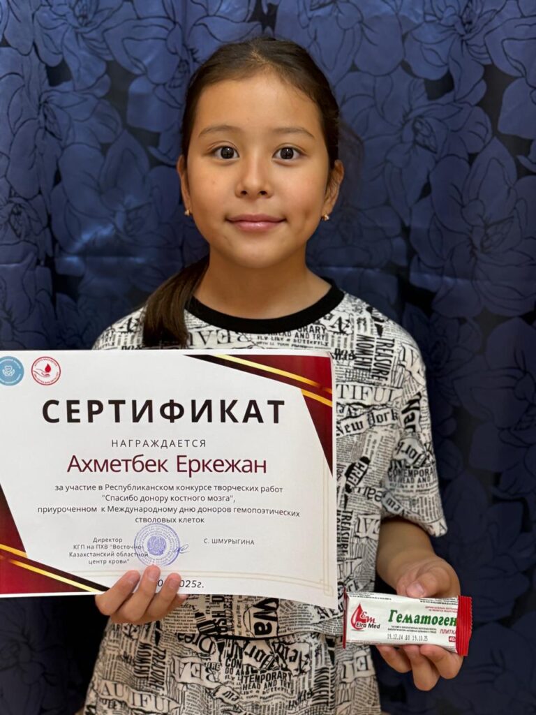 Бүгін облыстық қан орталығында «Сүйек кемігі донорына рахмет» республикалық балалар байқауының жеңімпаздары марапатталды!