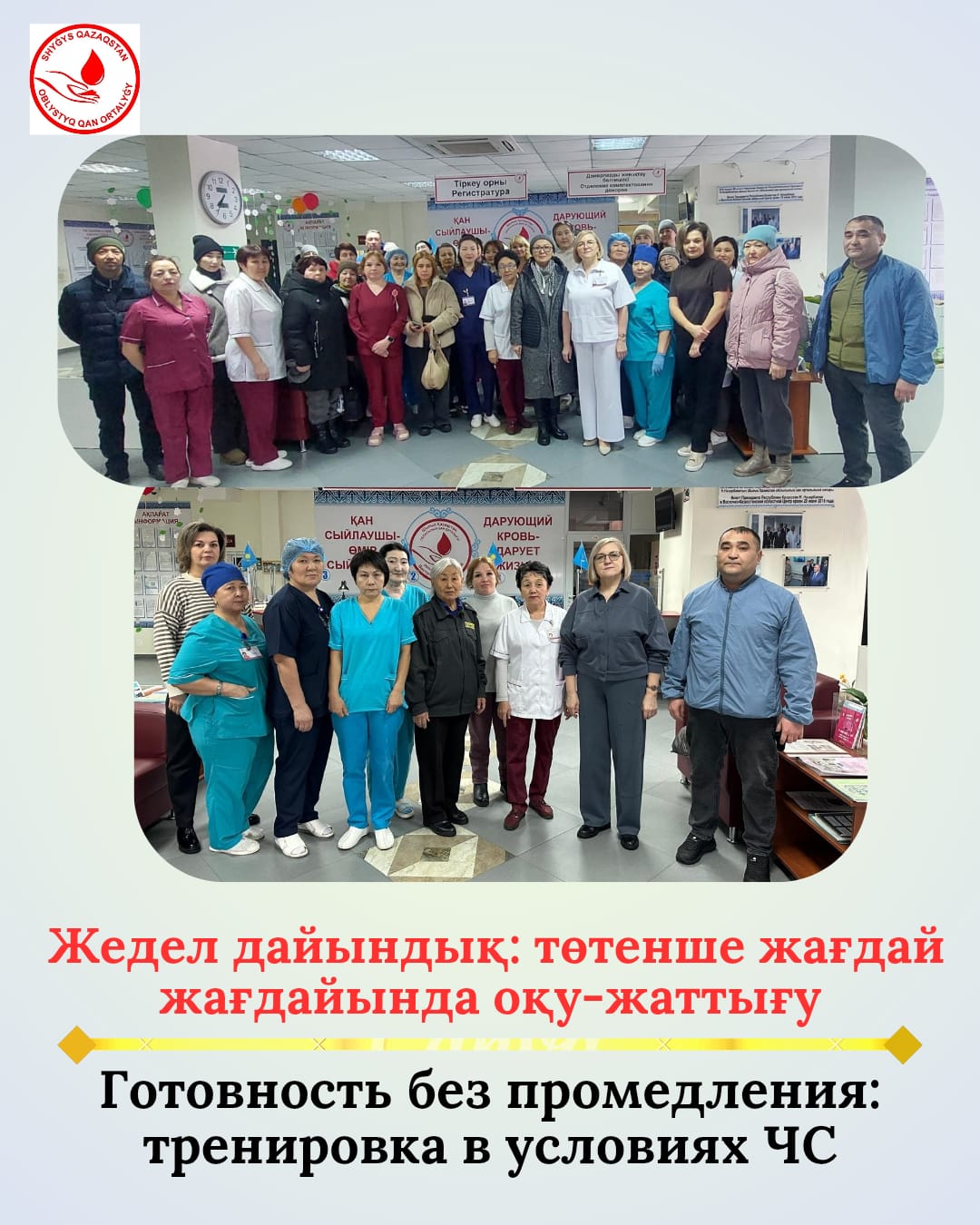 В КГП на ПХВ «Восточно-Казахстанский областной центр крови» проведена тренировка по отработке действий персонала при поступлении сигнала в условиях чрезвычайной ситуации.
