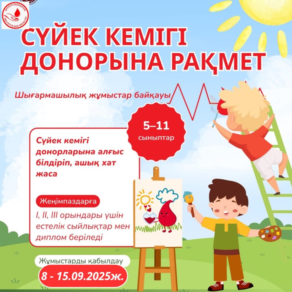 ШҚО қан орталығы оқушыларды «Сүйек кемігі донорына рахмет» атты байқауға шақырады!