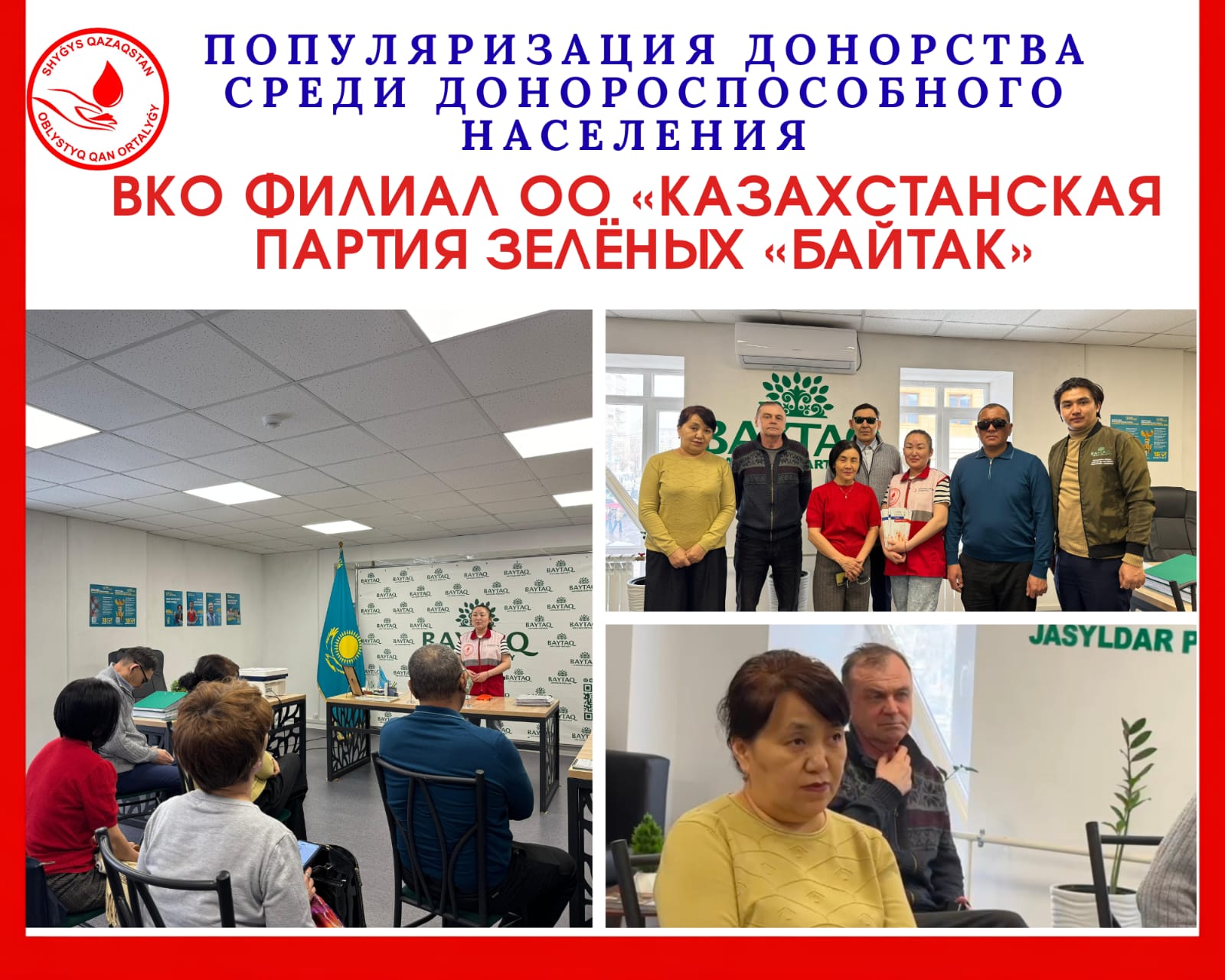 В Восточно- Казахстанском областном филиале ОО «Казахстанская партия зелёных «Байтақ» состоялась лекция на тему донорства крови
