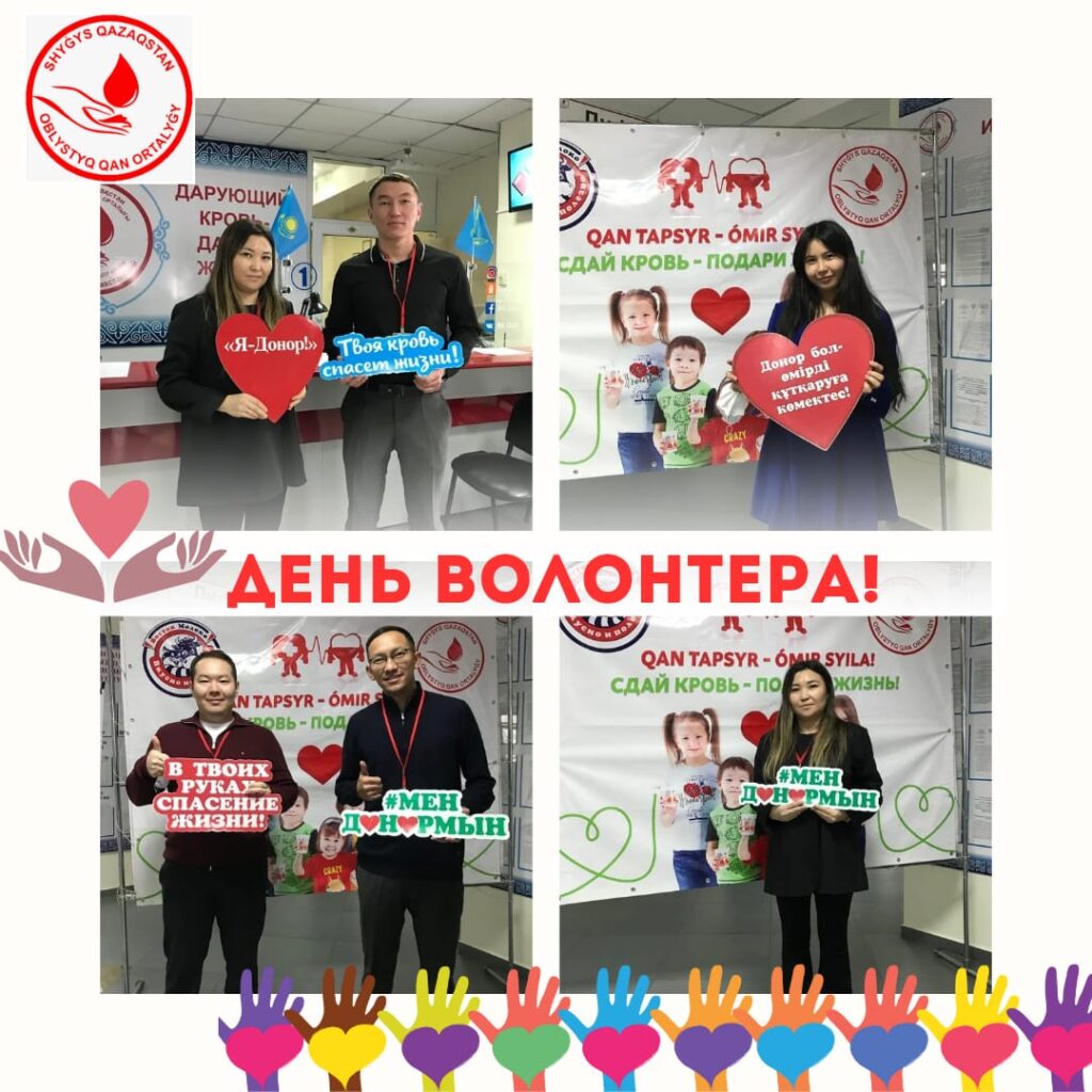 Сегодня, в честь Международного дня волонтёра, сотрудники КГУ «Молодёжный ресурсный центр» при акимате города Усть-Каменогорска посетили Восточно-Казахстанский областной центр крови.