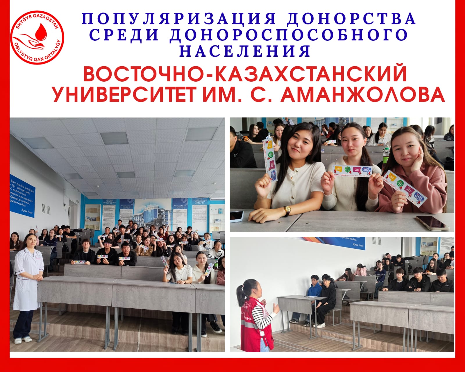 13 апреля в ВКУ им. С. Аманжолова состоялась лекция на тему донорства крови для студентов
