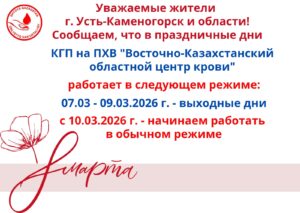 Сегодня, 06 марта 2026 года в Восточно-Казахстанский областной центр крови состоялась традиционная особенная донорская акция для милых дам — день красоты, доброты и настоящей женской силы