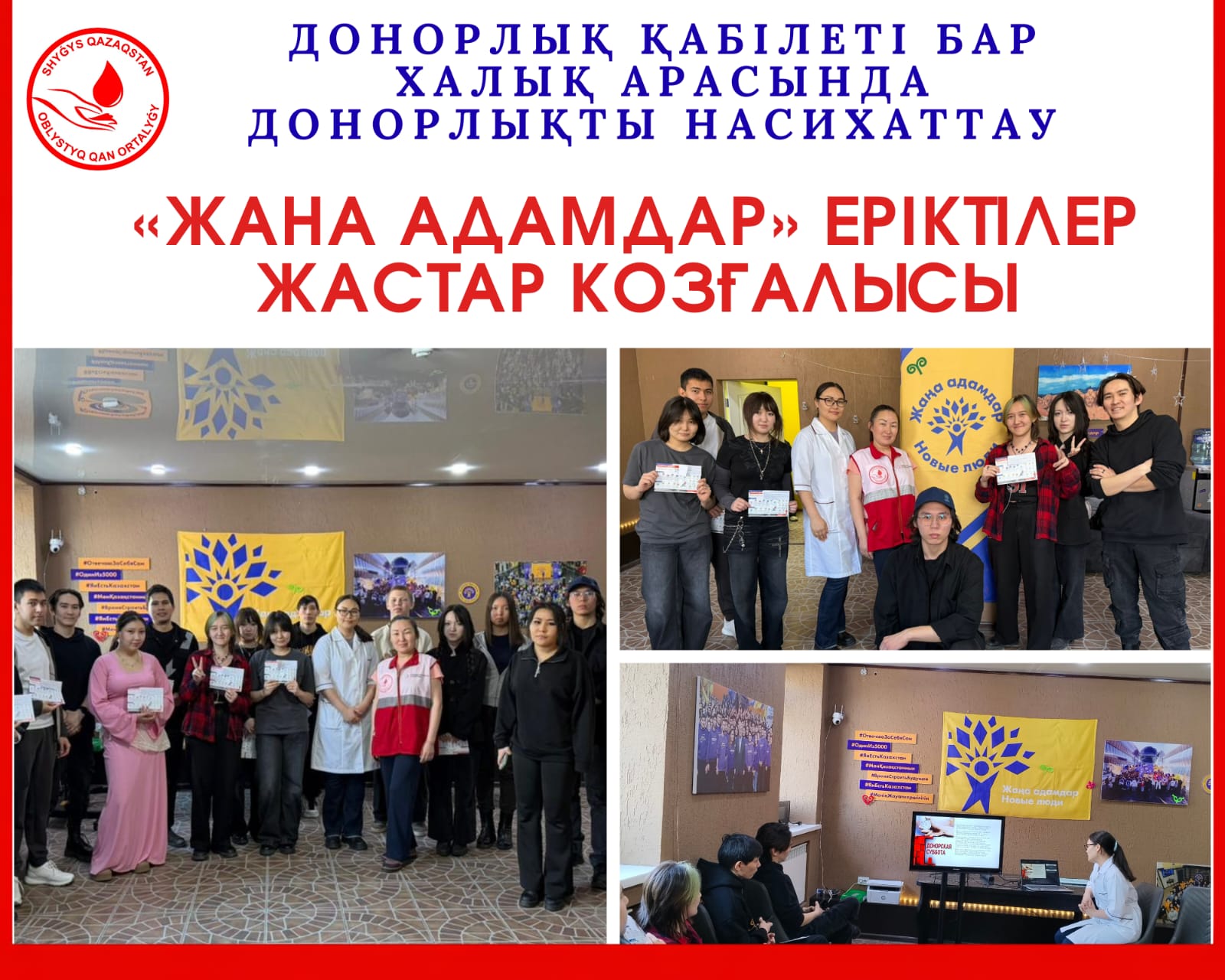 27 наурыз күні «Жаңа адамдар» еріктілер жастар қозғалысының кампусында қан донорлығы тақырыбына арналған дәріс өткізілді.