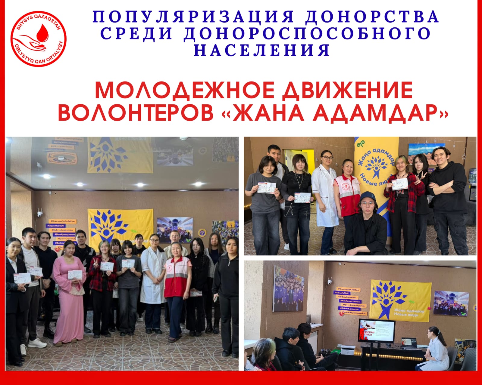 27 марта в кампусе молодежного движения волонтеров «Жаңа адамдар» состоялась лекция, посвященная теме донорства крови.