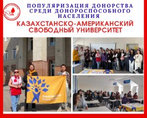 9 апреля, вслед за сдачей крови волонтёры молодежного движения «Жана Адамдар» совместно с сотрудниками областного центра крови провели ознакомительную беседу для студентов старших курсов в Казахстанско- Американском свободном университете