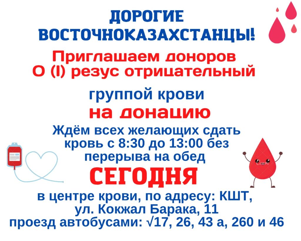 Приглашаем доноров группы крови с отрицательным резусом O (I) на донацию